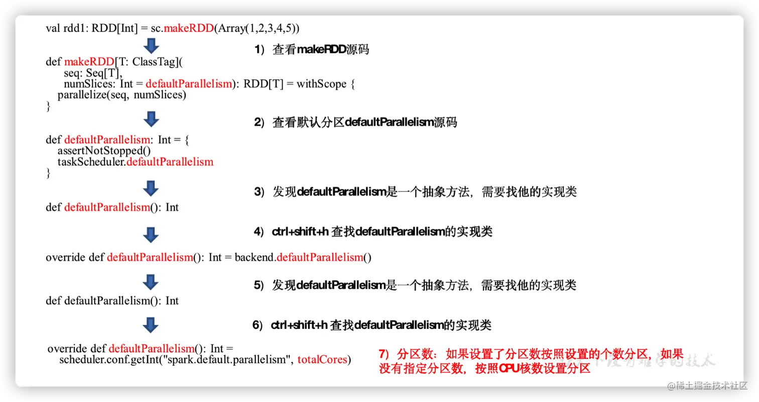 numSlices,查看源码得知这个是可以指定的切片数,也就是分区数,没有指定看源码得知就是CPU核数) - 如果没有指定分区数,则按照CPU的核数设置分区