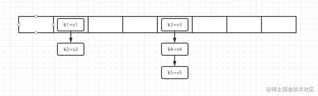 个长度为8的数组, 在进行添加操作时, 其实就是往这个数组中添加元素, 同一索引位置下的多个元素会以链表