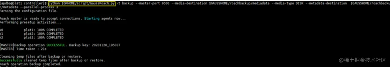 GaussDB内核的备份组件为GaussRoach.py和gs_roach,需在集群内拉起备份任务。
