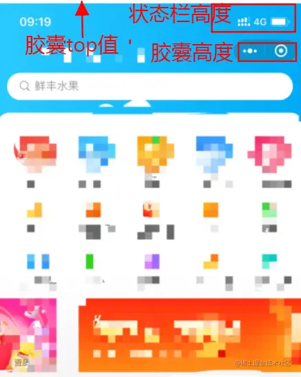 这部分,我们只需编写成自己想要的头部样式即可,但一般还需要计算一下顶部状态栏以及胶囊部分的高度.