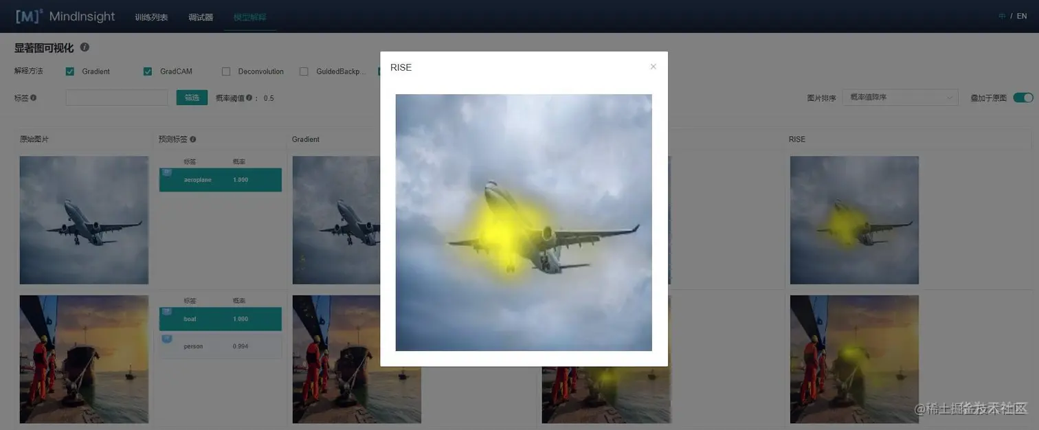 说明:下面所有示例图中的解释结果,都是MindSpore的MindInsight部件中的模型解释特性展现出来的。