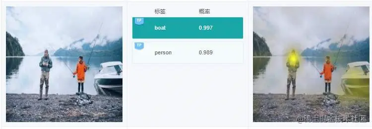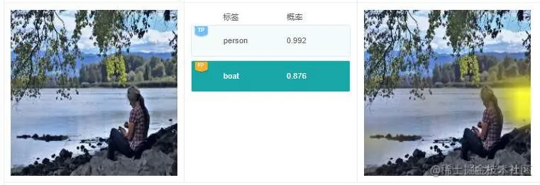 例7.2.3:上图中,有1艘小艇,有个标签是“boat”,这个没错。不过在右边针对标签“boat”的解释,高亮区域却在人身上,这个偏差有点大。
