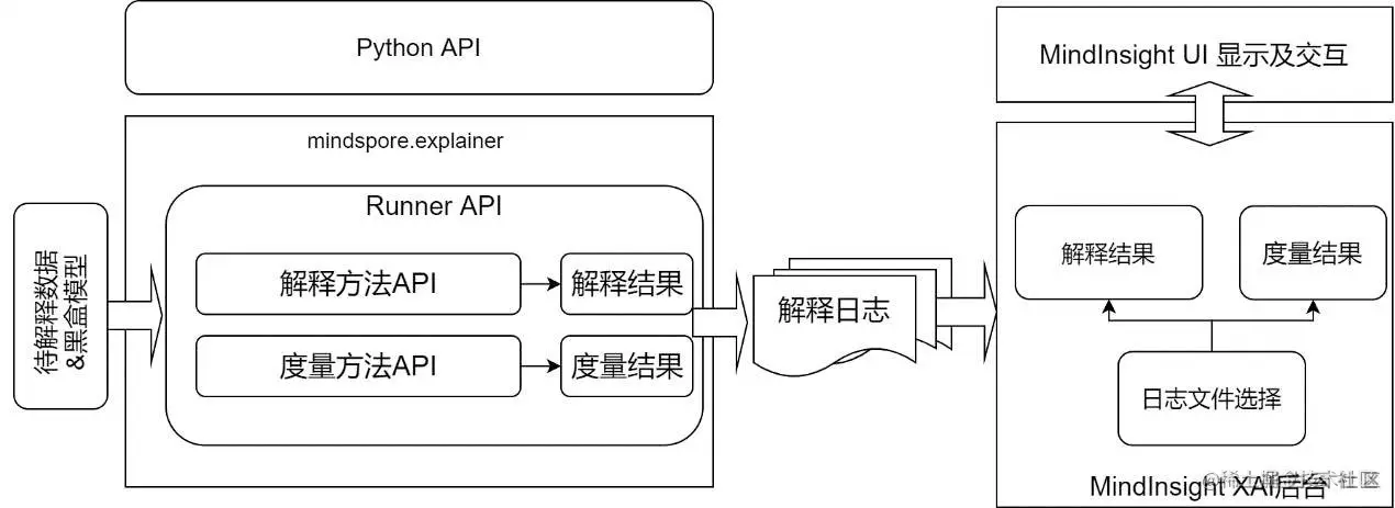 先使用脚本调用MindSpore 提供的python API进行解释结果的生成和收集,然后启动MindInsight对这些结果进行展示,整体流程如下图: