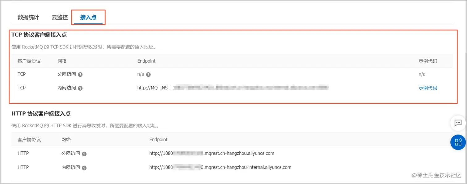 * 实例TCP 协议公网接入地址(实际项目,填写自己阿里云MQ的公网地址)