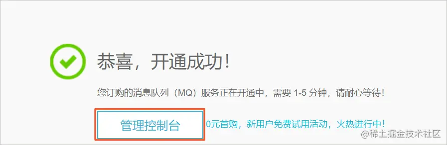 当您看到以下内容,则说明您已成功开通消息队列服务。
