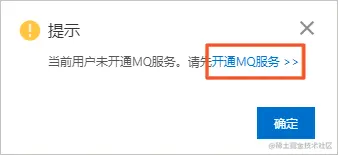 在弹出的提示对话框中,单击开通MQ服务。