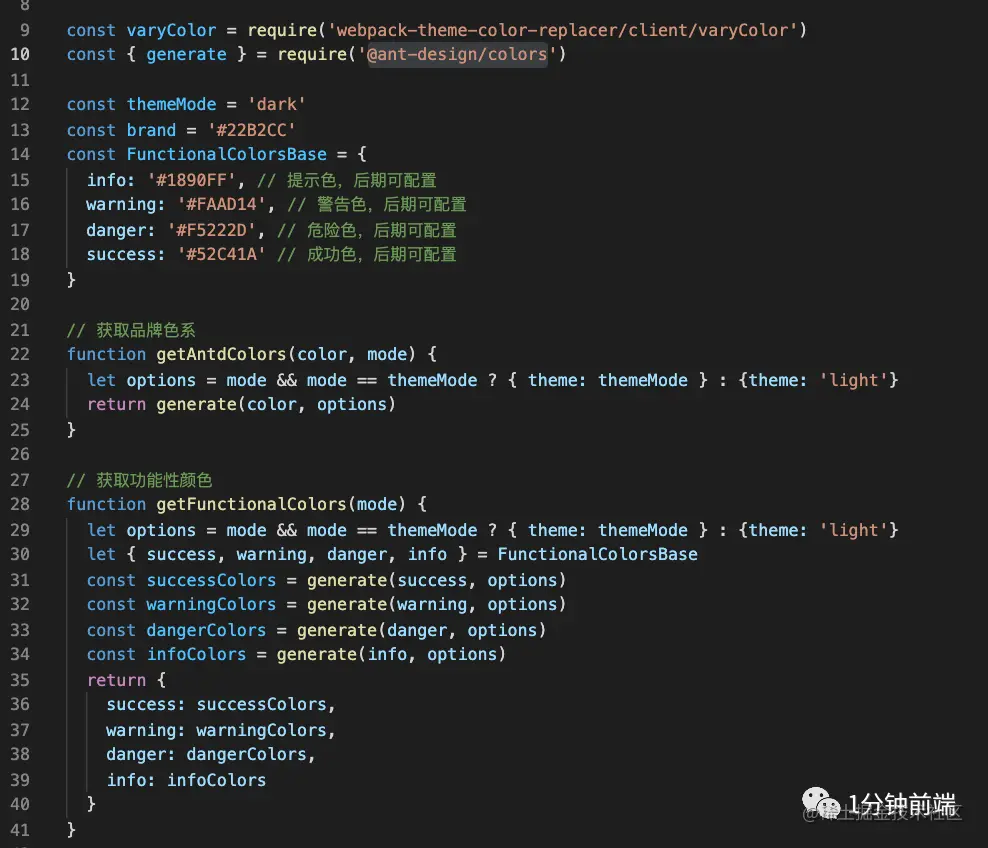 1、建一个存放公共css变量的js文件(variable.js),将需要定义的css变量存放到该js文件,品牌色及功能色等通过antd算法计算获得;