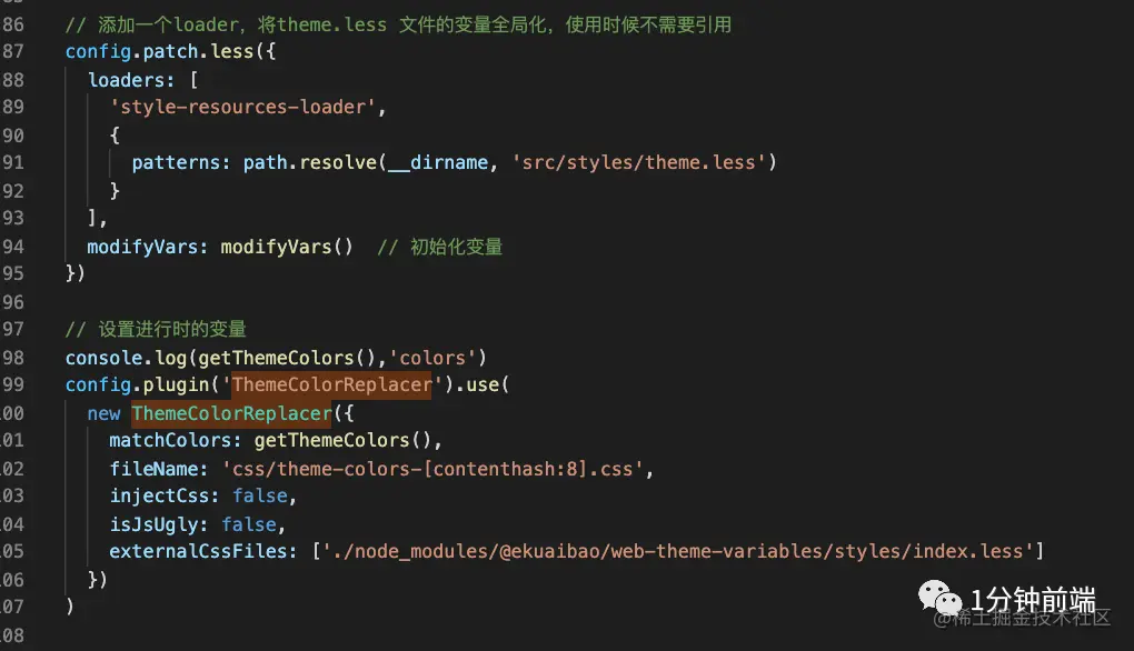 计算为色系变量值是通过js产出一个数组,想要导入到一个less文件中,再引入使用,想要动态切换的话,需要用到 less的modifyVars方法, 也是Ant Design 官方提供的方式,接着我们尝试