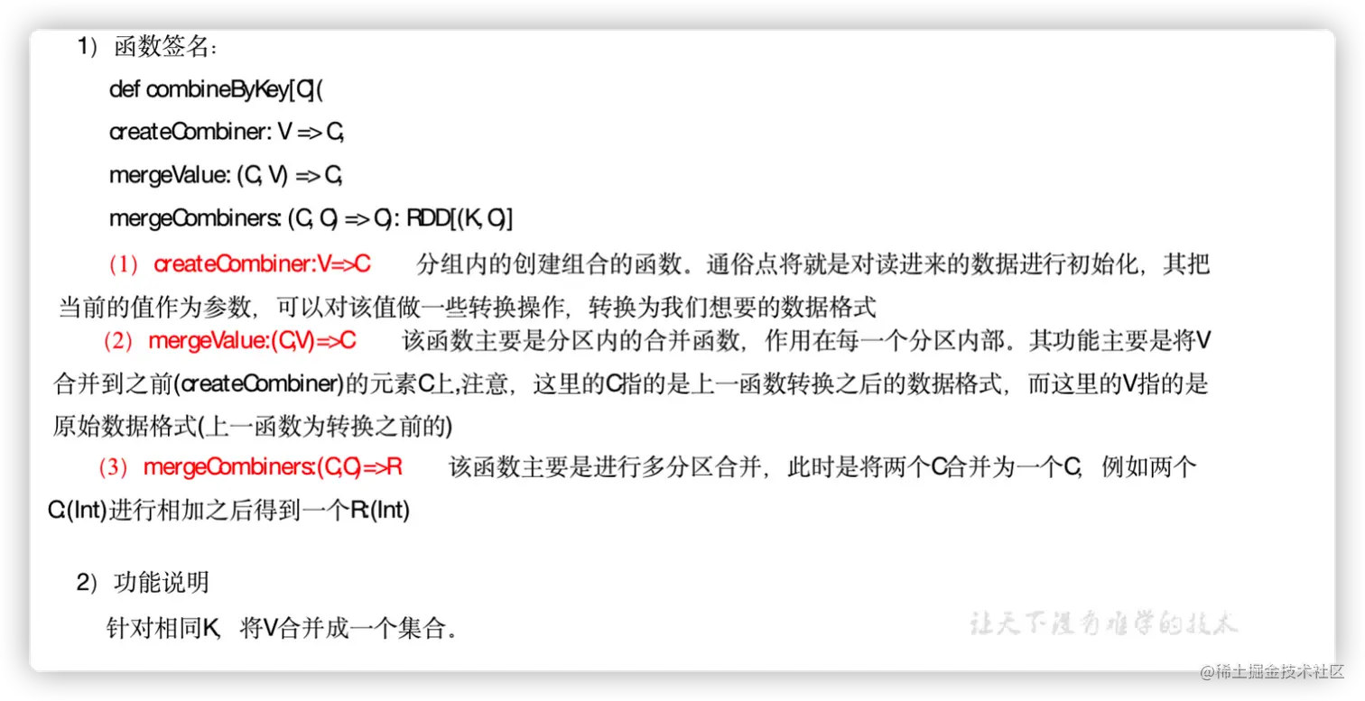 /* - `createCombiner`, which turns a V into a C (e.g., creates a one-element list)