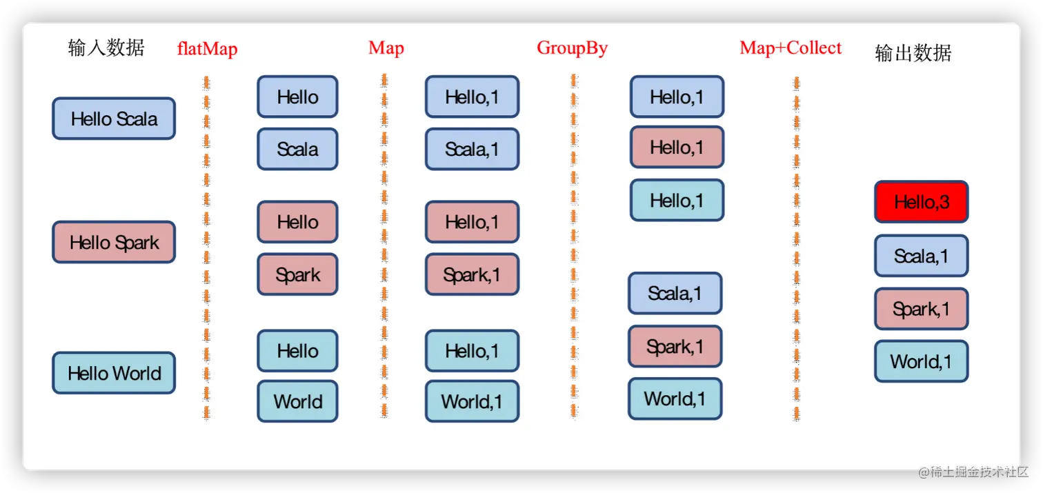 val rdd: RDD[(String, Int)] = sc.makeRDD(List(("Hello Scala", 2), ("Hello Spark", 3), ("Hello World", 2)))