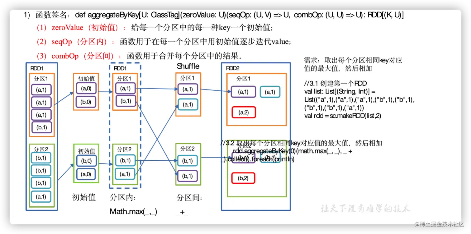 rdd.aggregateByKey(0)(math.max(_, _), _ + _).collect().foreach(println)