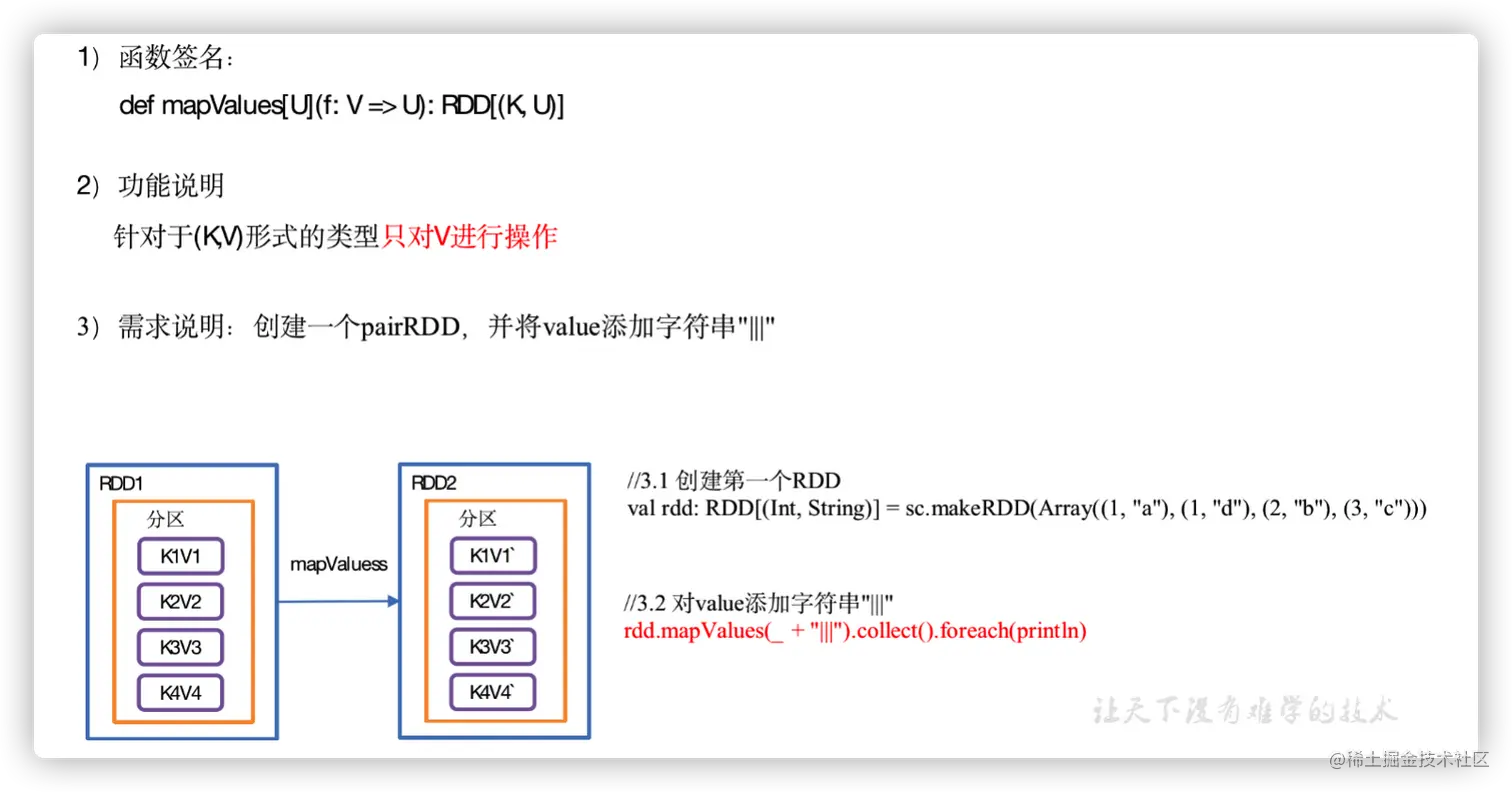 相当于对一个RDD数据集进行遍历,对每个元素中的value做操作