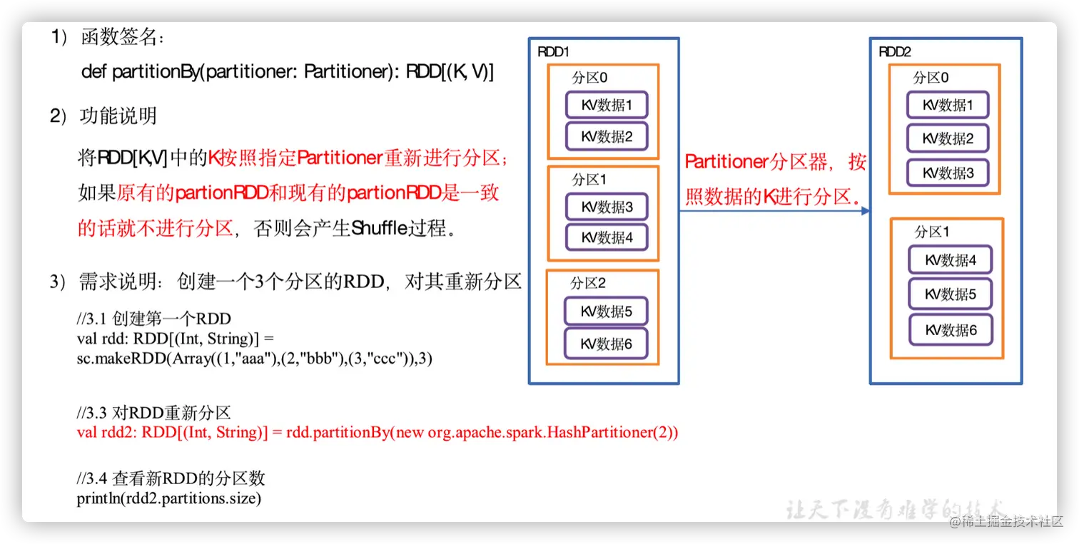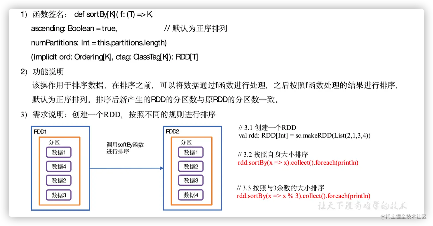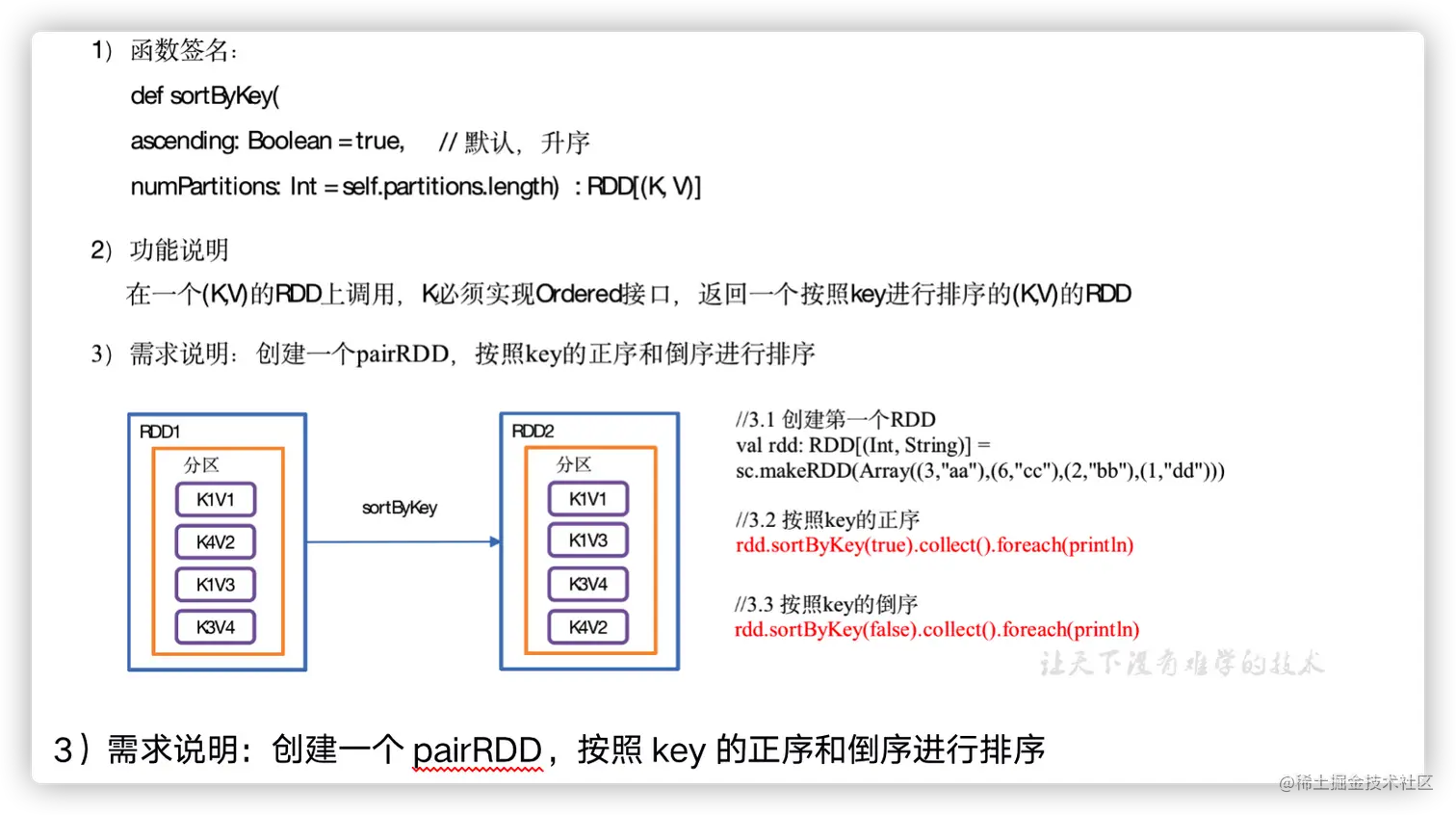 3)开发指导:在不影响业务逻辑的前提下,优先选用reduceByKey。求和操作不影响业务逻辑,求平均值影响业务逻辑。