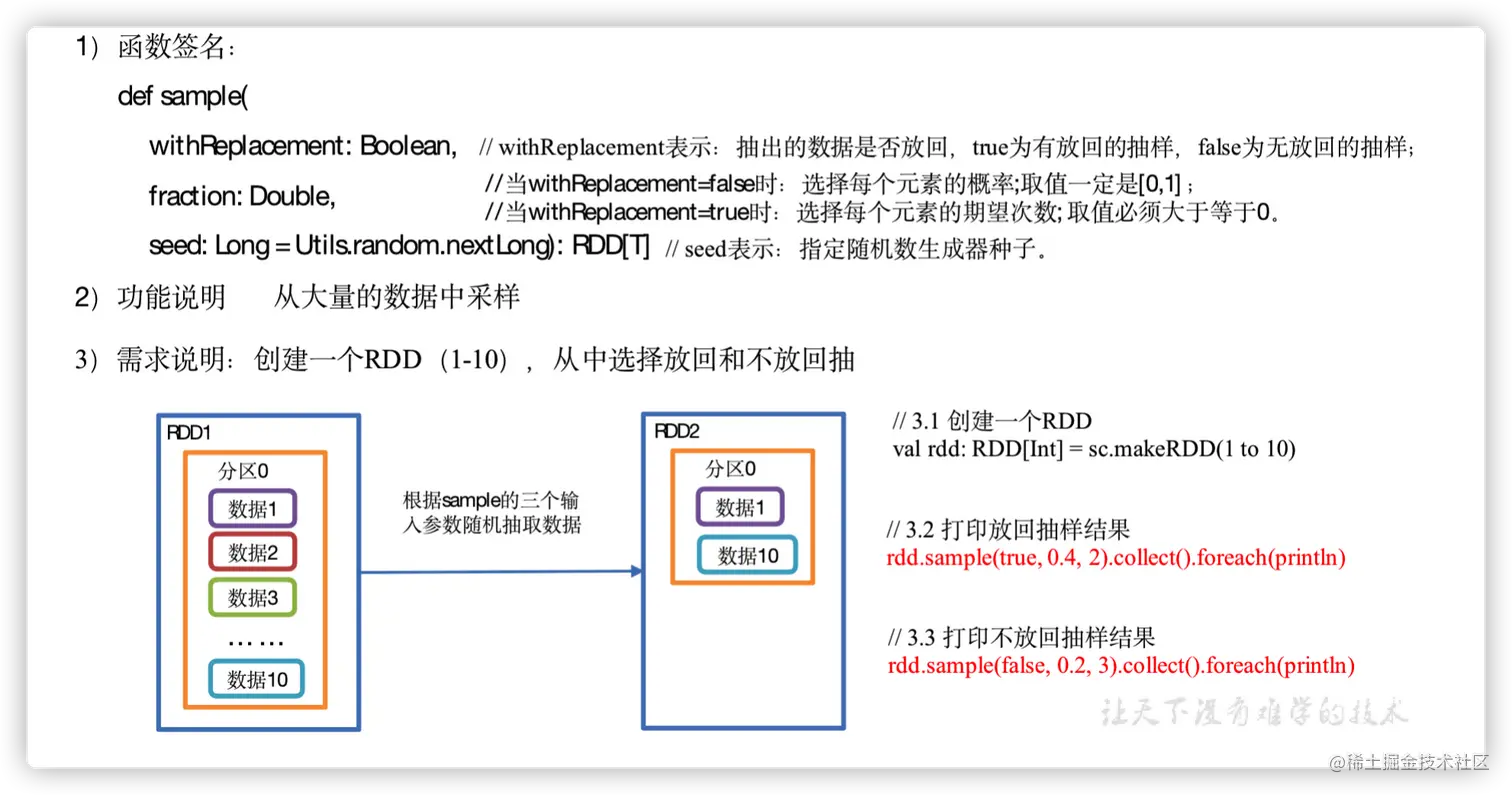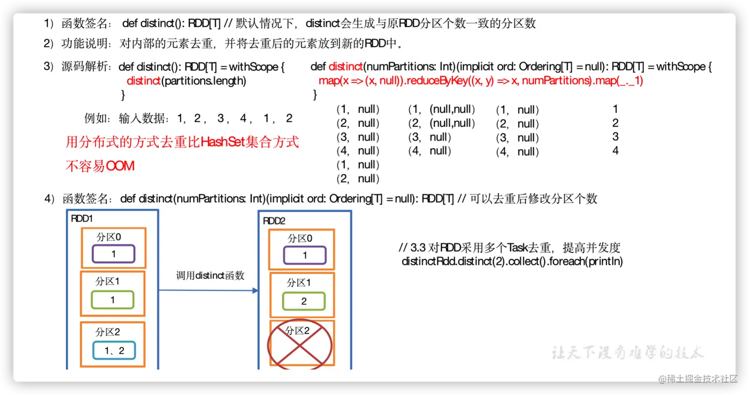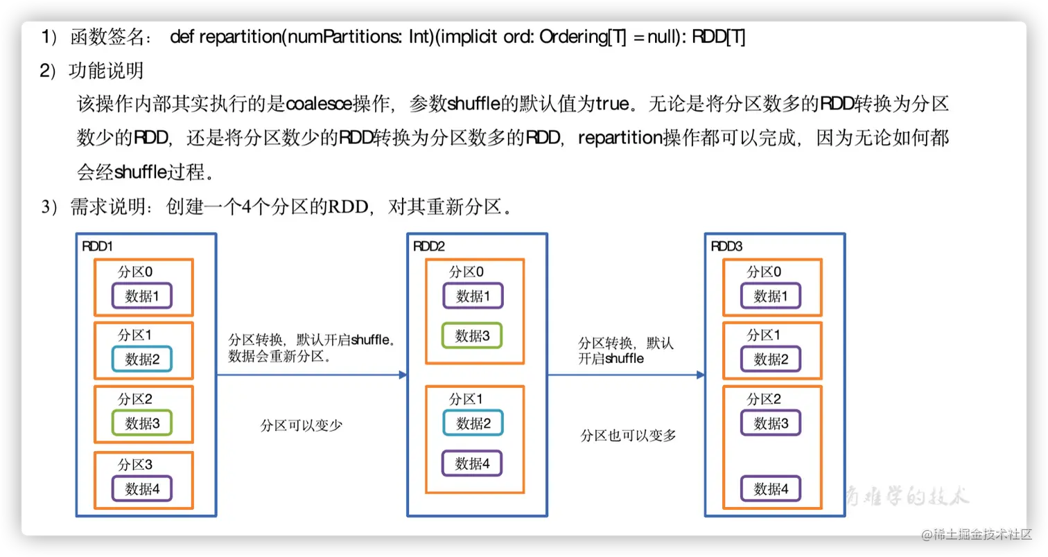 3)开发指导:在不影响业务逻辑的前提下,优先选用reduceByKey。求和操作不影响业务逻辑,求平均值影响业务逻辑。