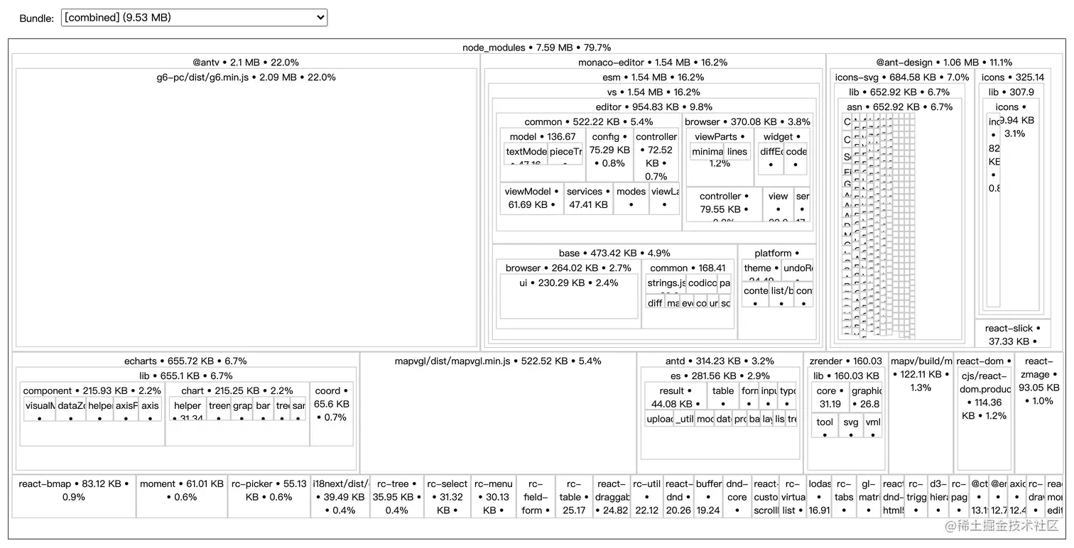 source-map-explorer 通过分析 sourcemap 文件生成 CRA 项目打包体积分析报告,效果如下图: