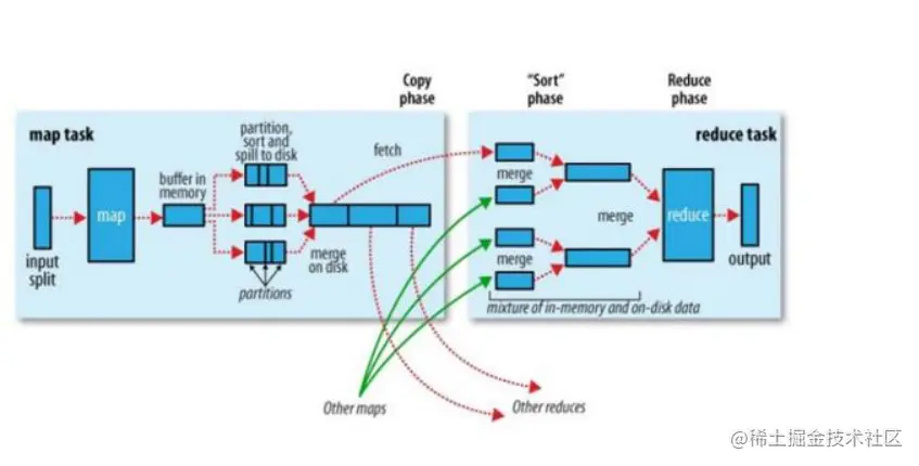 在MapReduce中,Shuffle是一个非常重要的过程,正是有了看不见的Shuffle过程,才可以使在MapReduce之上写数据处理的开发者完全感知不到分布式和并发的存在。