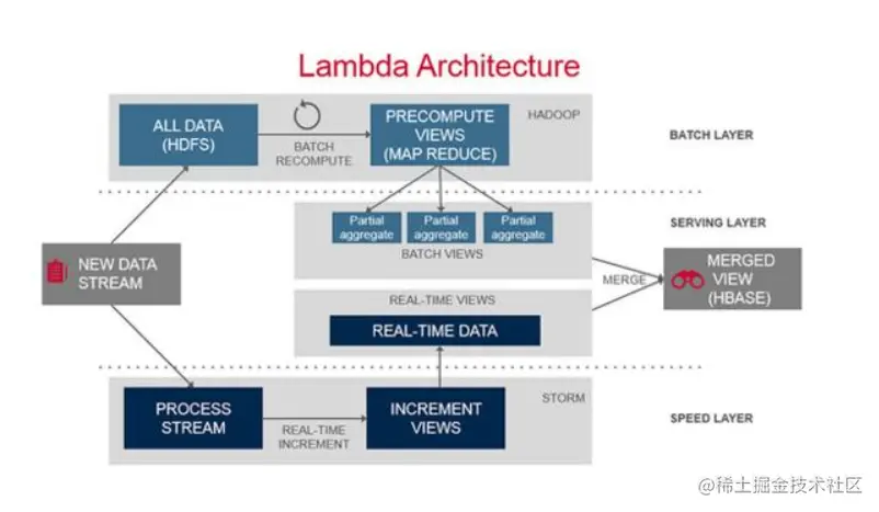 Lambda Architecture是一个大数据处理平台的参考模型,如下图所示: