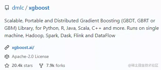 github.com/dmlc/xgboos… 在 GitHub 已获得 20.4 k Star。