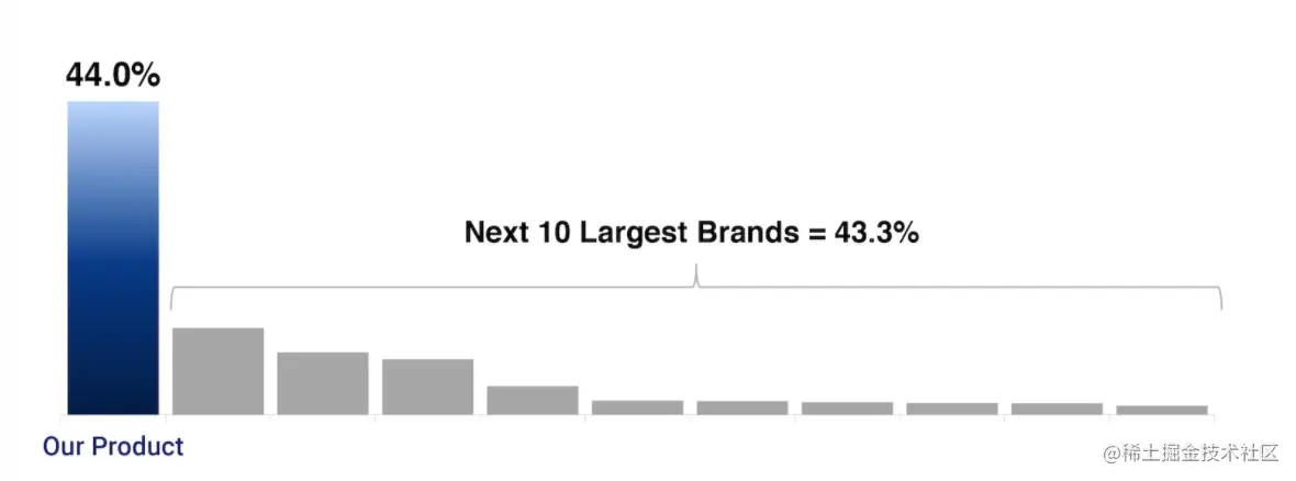 这个主要品牌的条形图在规模上具有误导性,因为没有Y轴。即使只有很小的差异(小于1%),超大的蓝色条也会被放大而不成比例。