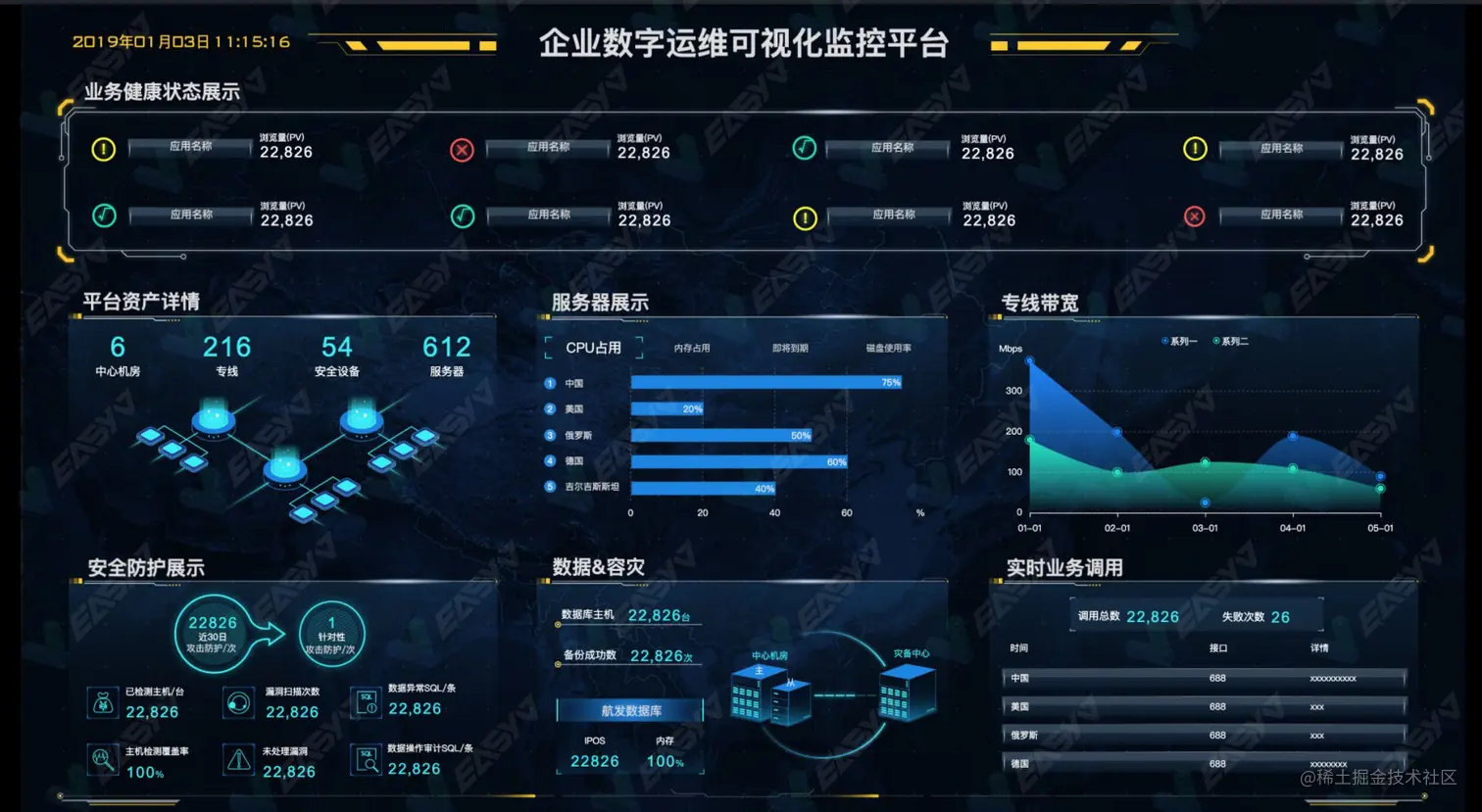 该工厂运输数据可视化使用了几种不同的可视化图表,以一目了然的易于理解的格式显示相关数据。数据也有很好的标签,能更好的展现工厂运行状态。