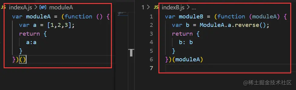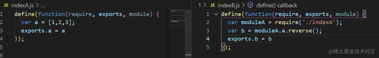 上述的indexA和indexB.js文件就可以写成下面这样
