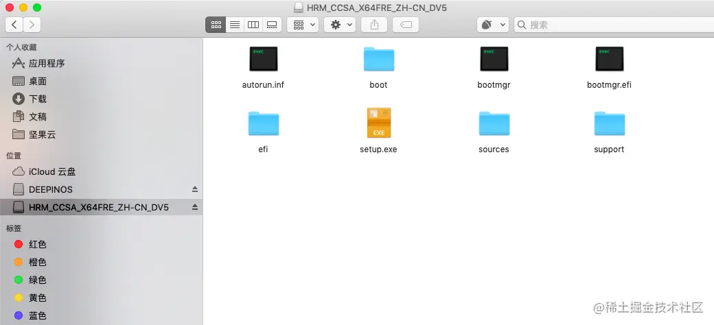 双击你下载的 ISO 文件,这时你相当于将镜像挂载到了自己的电脑上,应该出现如下所示的情况。