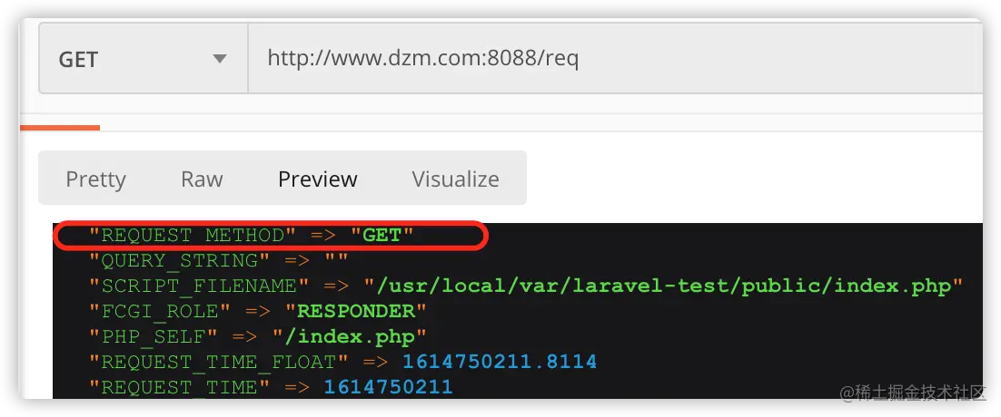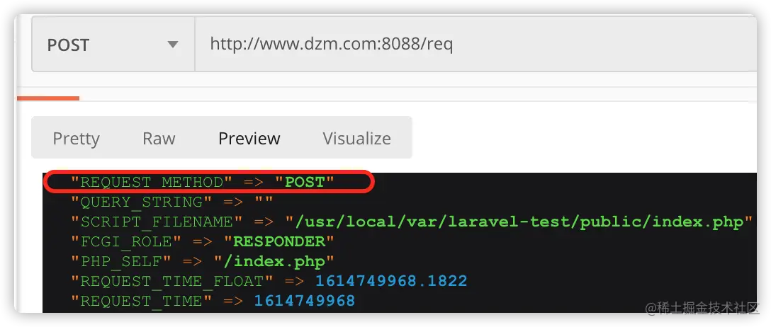 // match 支持一次性填写多个请求类型 Route::match(['get', 'post'], '/req', function () { // return 'match 路由定义'; dump($_SERVER); }); -
