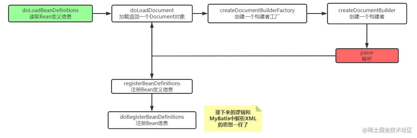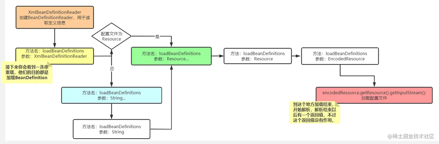可以get到,它主要就是创建了一个工厂BeanFactory,并且解析了配置文件,加载了Bean定义信息(面试的时候直接答这个点就够了,如果想说的可以将下面的bean信息加载聊聊)没错,标红的就是咱接下来细聊的点