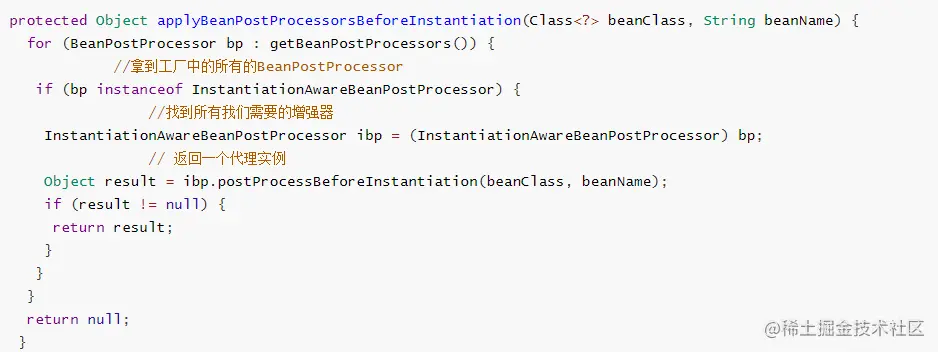 - 判断是否存在InstantiationAwareBeanPostProcessors,修改之前设置的属性
