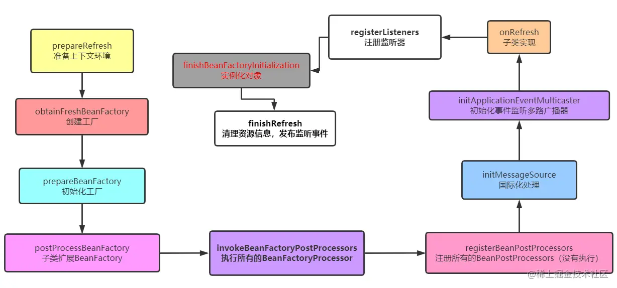 这个方法几乎完成了所有的操作,创建工厂,执行Processor等等,实例化对象,开启事件监听等等。