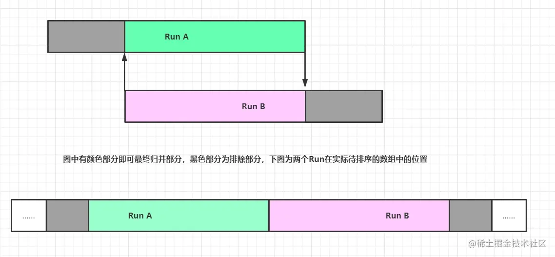 // !!! Run1 这个位置之前的可以省略不再排序,因为Run2所有元素都大于这个位置