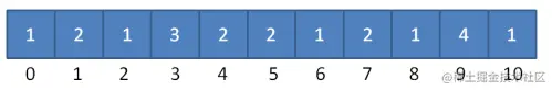假设:一组范围在 0~10 之间的数字,9, 3, 5, 4, 9, 1, 2, 7, 8,1,3, 6, 5, 3, 4, 0, 10, 9, 7, 9
