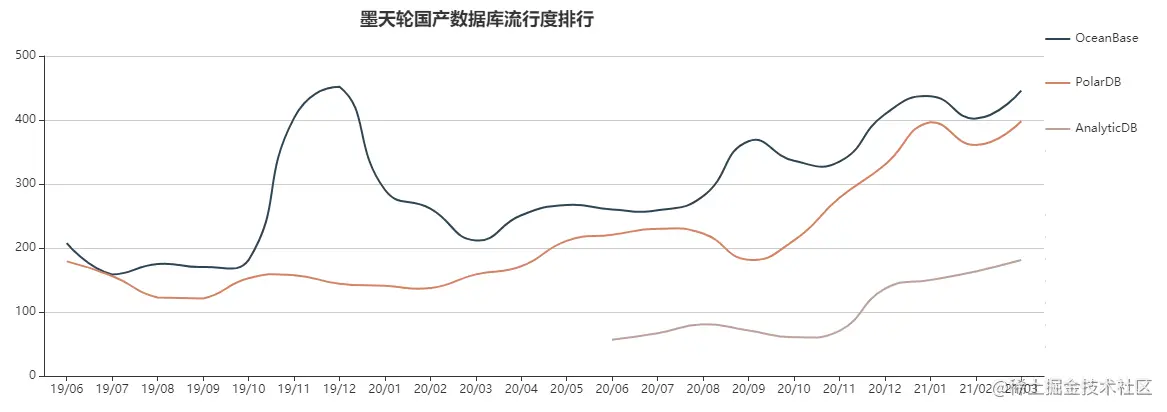 - 亚军:OceanBase,自2020年9月流行度榜单推出后首次夺亚,单月积分上涨43.65,难掩光芒;