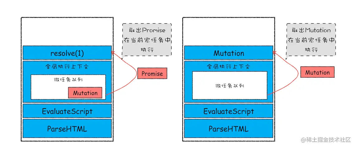 - DOM 节点变化产生的微任务(MutationObserver 异步解决性能、微任务解决实时性)