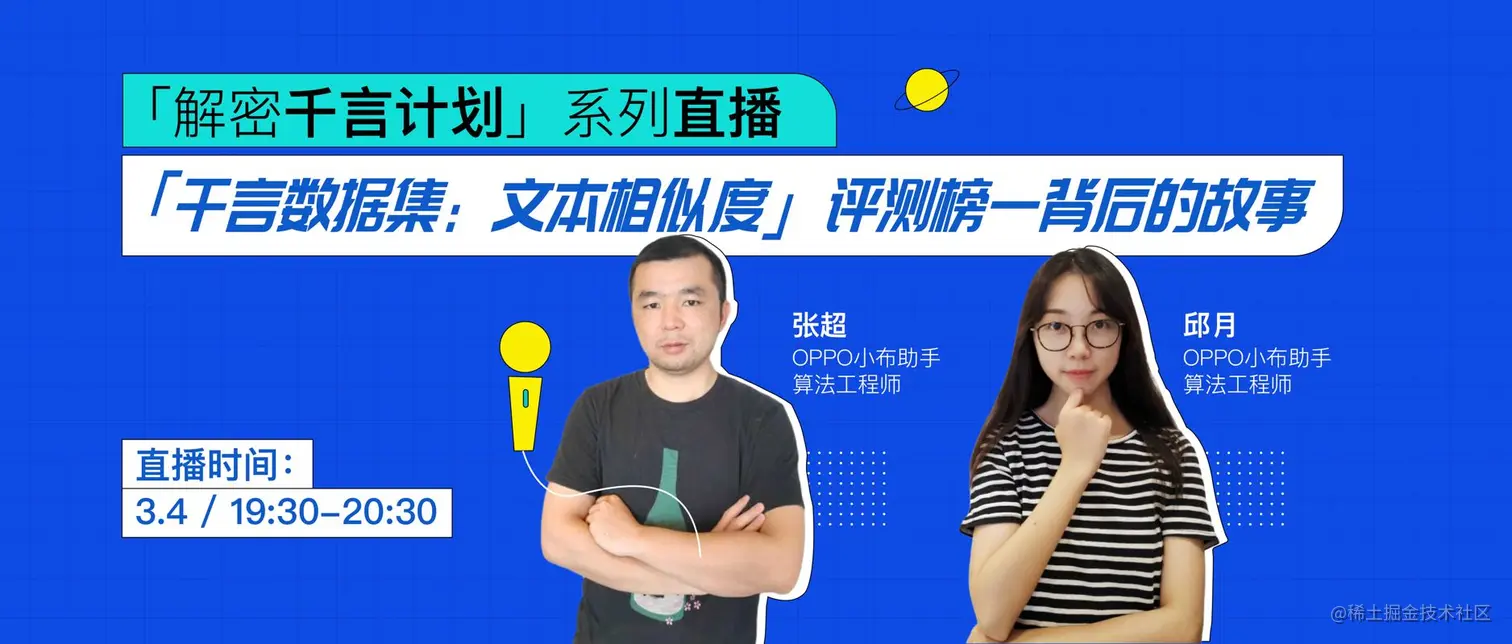 为了帮助大家更好地使用千言、参与千言的竞赛交流,千言特邀小布助手闲聊组团队做客,通过本周四的直播,让我们一起跟着两位老师了解文本相似度的常用算法以及『千言数据集:文本相似度』的竞赛方案。