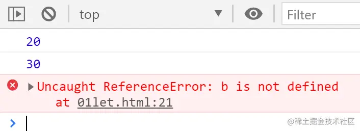 所以,在使用let声明变量时,必须要先声明,然后才能使用发,否则报错