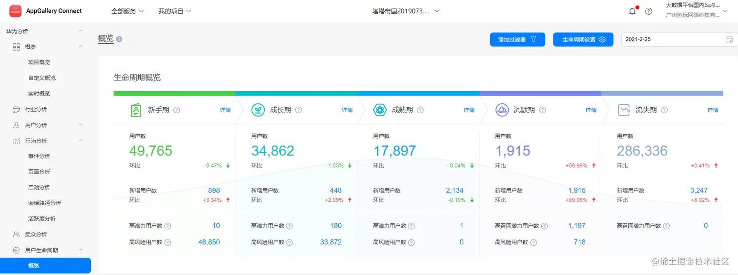 Now 冥想的运营人员借助华为分析服务的用户生命周期模型,将新手期、成长期的高潜力用户存为受众,通过针对性的引导、发放会员折扣等方式,将新手期、成长期用户的会员购买转化率提升了27%。此外,华为分析服务的机器学习算法能预测各个生命周期阶段的转化潜力用户和流失风险用户的数量。