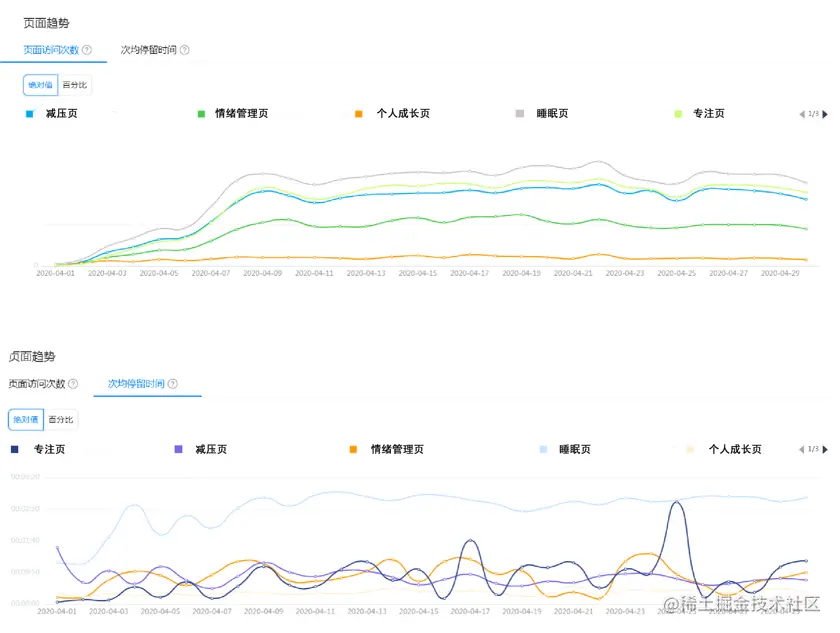 Now 冥想初期的线上课程主要分为减压、情绪管理、个人成长、睡眠、专注这五类,运营人员通过华为分析服务的页面分析报告,发现新用户在“睡眠”页面的访问次数及次均停留时间远超其他几个相同层级的页面,说明用户对于“睡眠”的需求最为迫切。