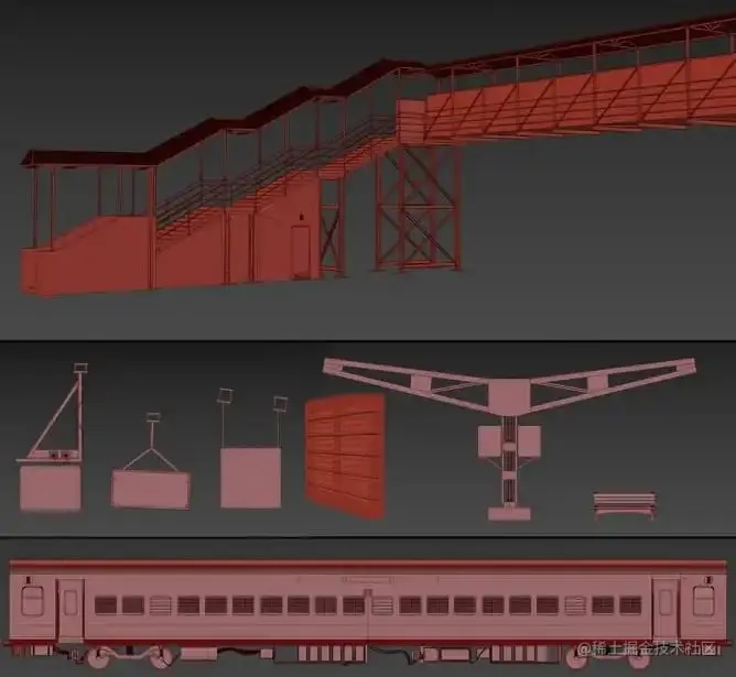 我想让我的作品更加真实,但在网上很难找到特定的资产和信息,所以亲自去了几次火车站拍了一些照片,作为场景所需的细节和纹理的参考。