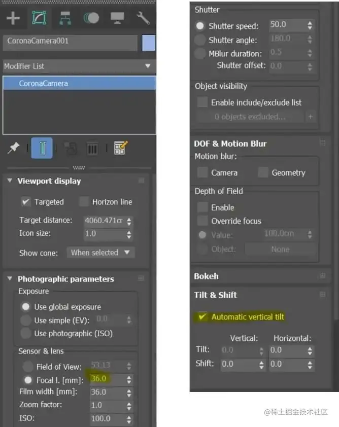 我一向喜欢用两点透视,在这个作品中也是一样。关于相机设置,除了焦距以外,其他参数我都采用了默认值。