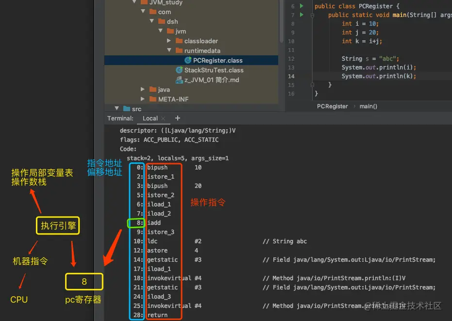 pc寄存器用来存储指向下一条指令的地址,也即将要执行的指令代码,执行引擎根据程序计数器读取下一条指令地址,然后根据指令进行执行