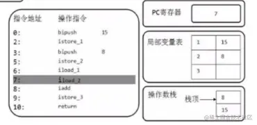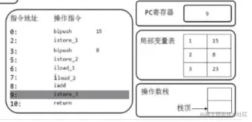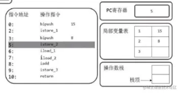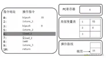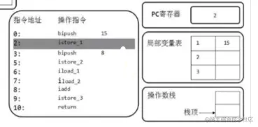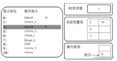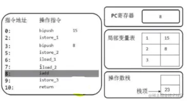 iadd操作将操作数栈中的变量相加,然后存储到操作数栈