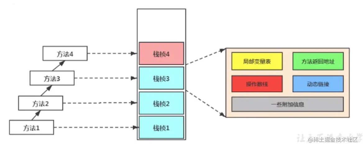 - 1.定义为一个数字数组,主要用于存储方法参数和定义在方法体内的局部变量,这些数据类型包括各类基本数据类型、对象引用(reference),以及returnAddressleixing