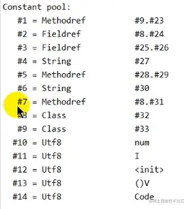 3.在Java源文件被编译成字节码文件中时,所有的变量和方法引用都作为符号引用(symbolic Refenrence)保存在class字节码文件(javap反编译查看)的常量池里。比如:描述一个方法调用了另外的其他方法时,就是通过常量池中指向方法的符号引用来表示的,那么动态链接的作用就是为了将这些符号引用(#)最终转换为调用方法的直接引用。