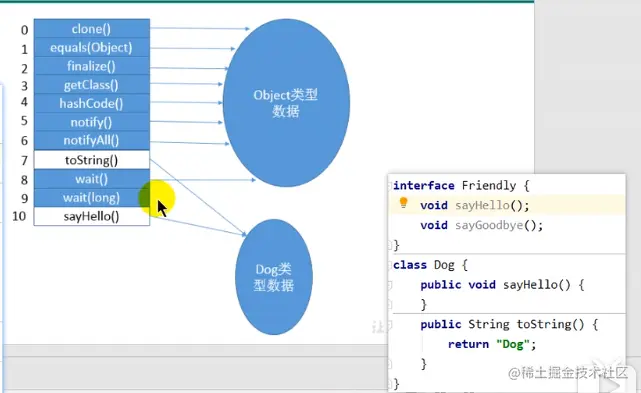 可卡犬虚方法表:可卡犬若是使用toString方法无需向上找Object类,只需找到Dog类即可;这是一个效率的提升