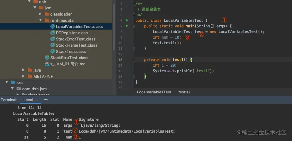 1.当一个实例方法被调用的时候,它的方法参数和方法体内部定义的局部变量将会按照声明顺序被复制到局部变量表中的每一个slot上