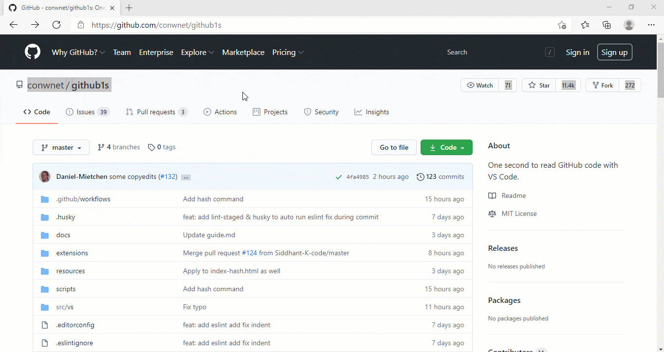 1s 使用“vscode”阅读 Github 的源码