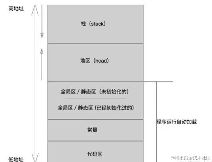 全局变量和静态变量的存储位置,初始化的全局变量和静态变量在一块区域,未初始化的全局变量和未初始化的静态变量在相邻的另一块区域。程序结束后,由系统释放。