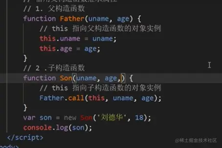 利用call改变被继承构造函数的this指向,再把参数传进去,实现继承