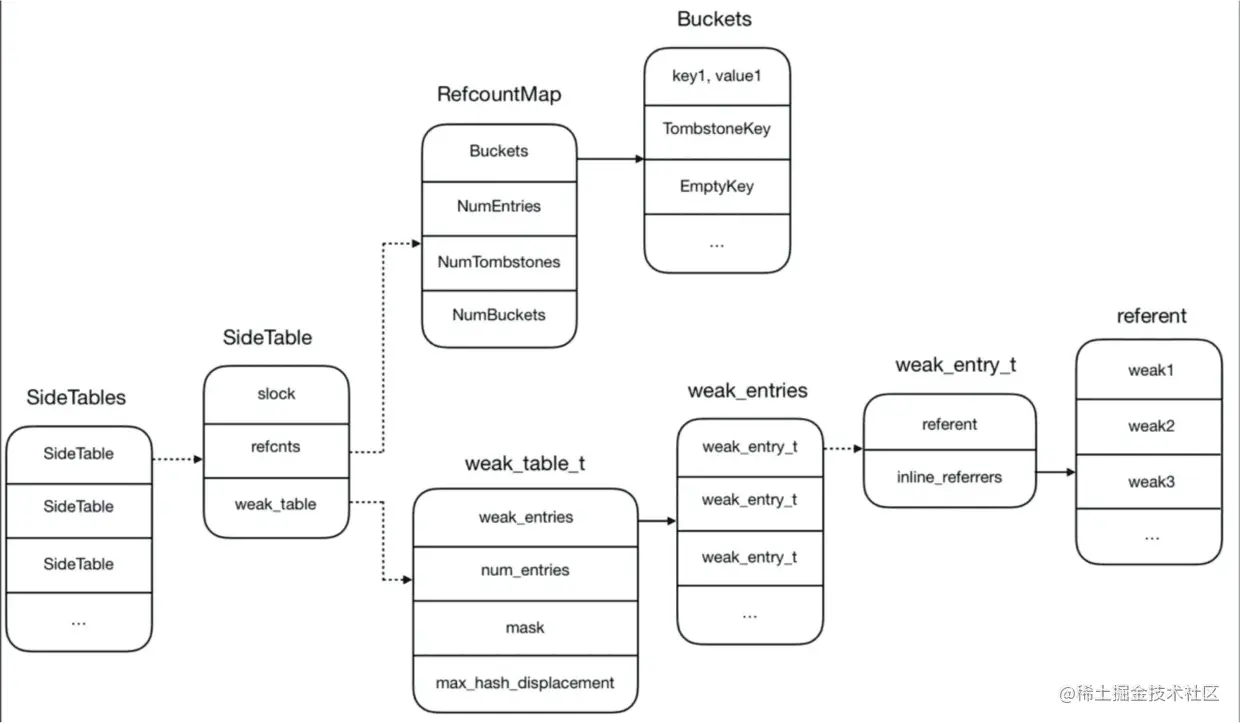 weak_referrer_t *referrers; // 指向referent对象的weak指针数组